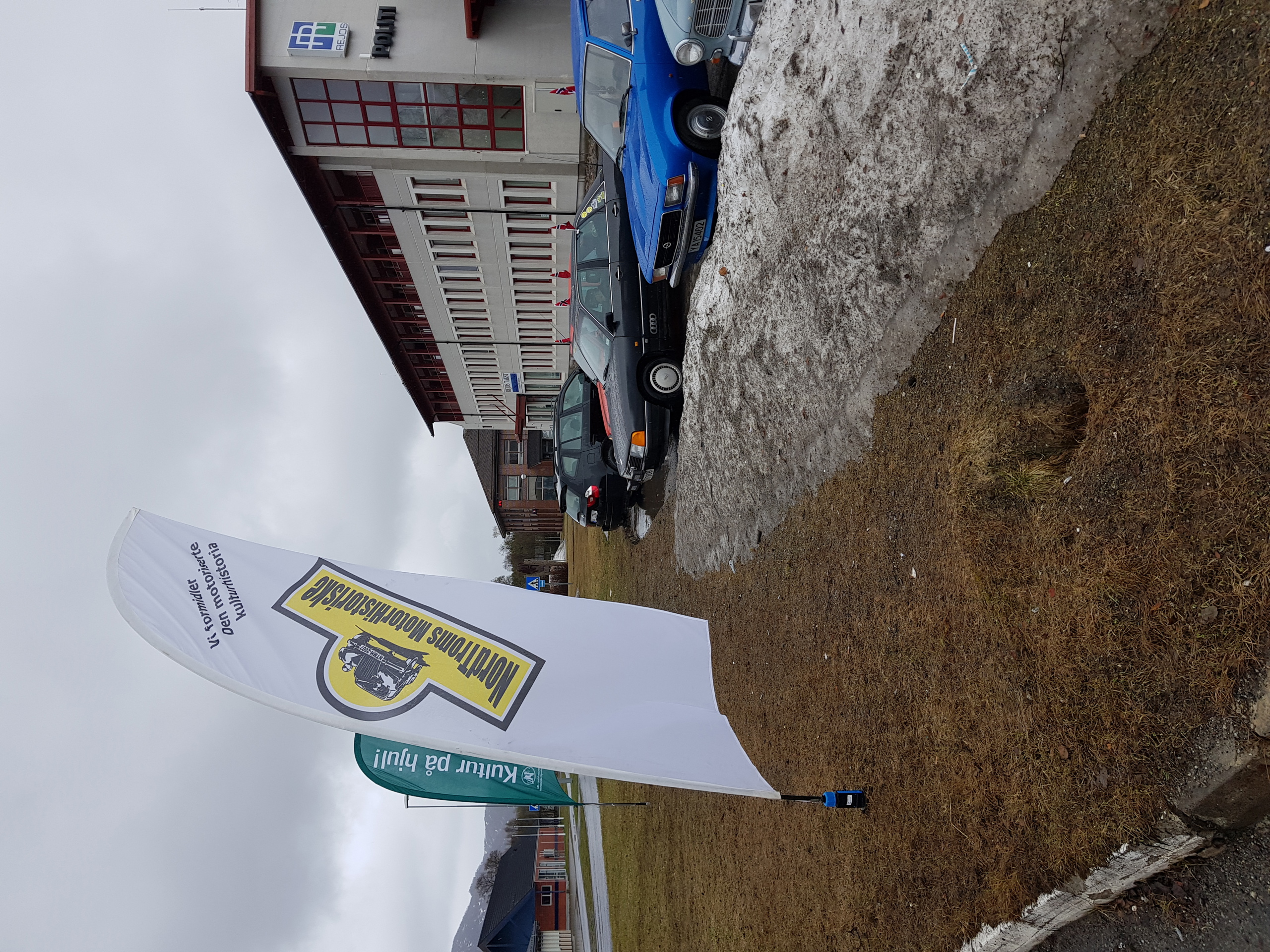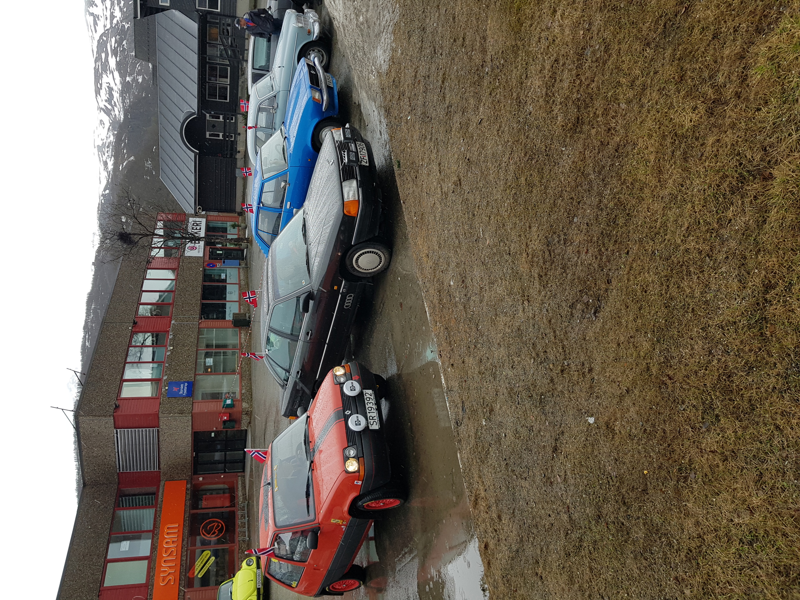 Til tross for vått og kjølig vær var det 7-8 biler som samlet se i Storslett sentrum for 17.mai markering. Noe gammel snø ligger ennå men det er straks full sommer